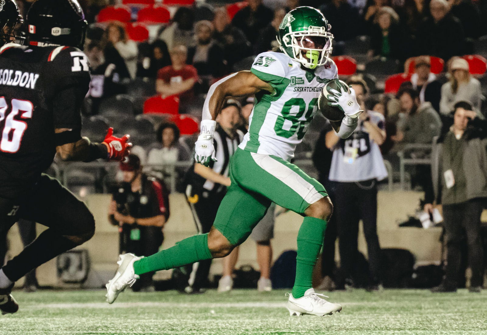 The Saskatchewan receiver room is starting to fill up with Kian Schaffer-Baker’s return from injury. Trevor Harris made sure he felt right at home with four receptions on five targets for 40 yards.