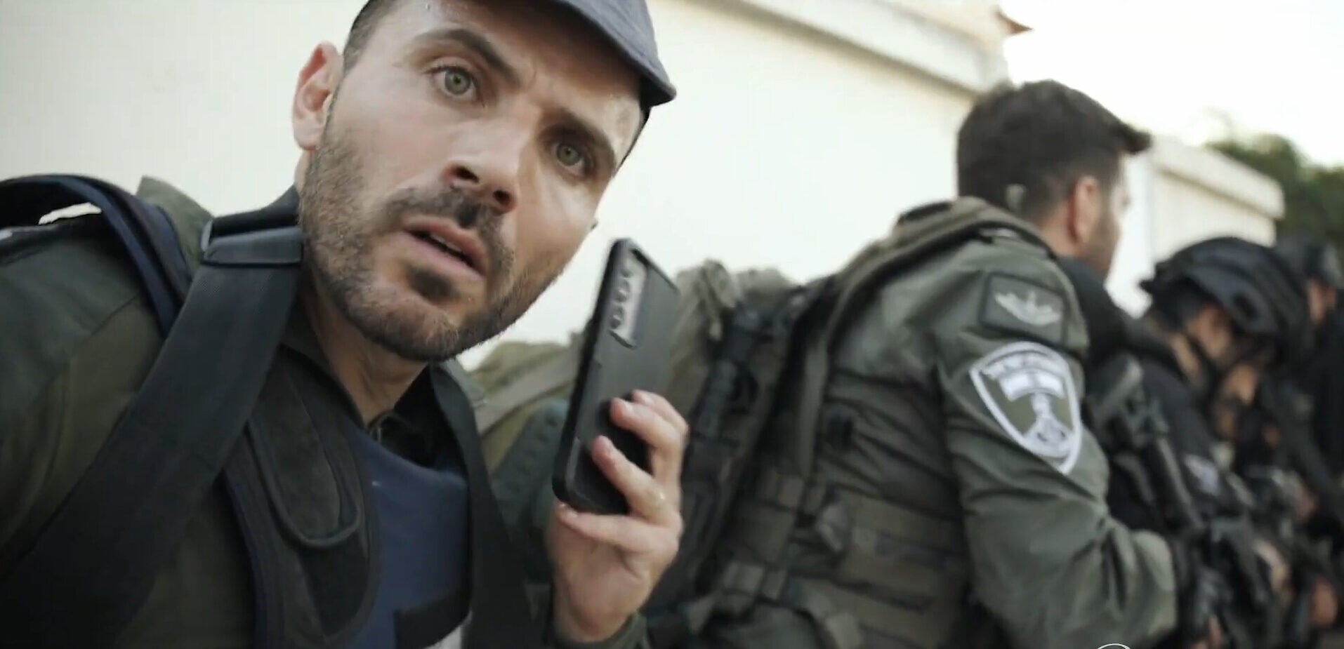 As the attack unfolds on the streets of Ofakim, viewers watch Kobi fight terrorists, chasing one through white sukkah dwellings constructed outside apartment buildings.
