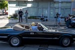 Secretary Noem’s motorcade leaves the area after her visit to Portland, Ore., on Tuesday, Oct. 7, 2025.