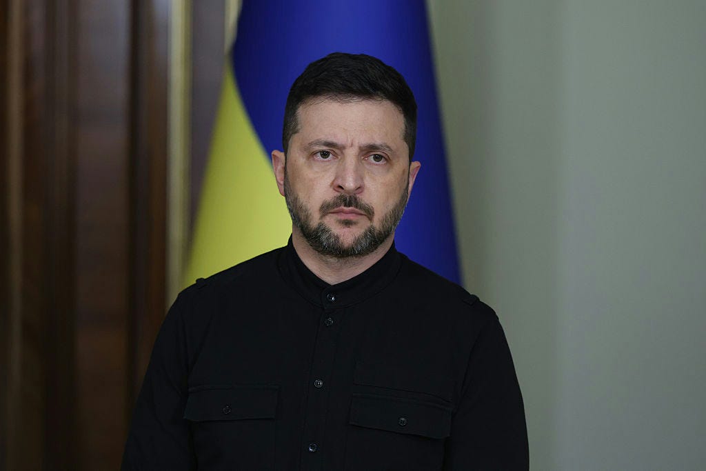Ukrainian president Volodymyr Zelensky gives a media briefing on Russian strikes on October 10, 2025, in Kyiv, Ukraine. (Viktor Kovalchuk/Global Images Ukraine via Getty Images)