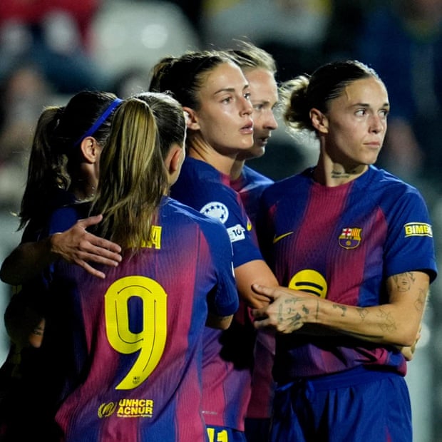 Barcelona won a penalty early in the second half, only for Putellas to send her attempted Panenka over the bar. Just before the hour, Kika Nazareth volleyed into the far corner to double the visitors’ lead, and Putellas made amends with her second spot-kick. Caroline Graham Hansen’s late tap-in completed the rout.