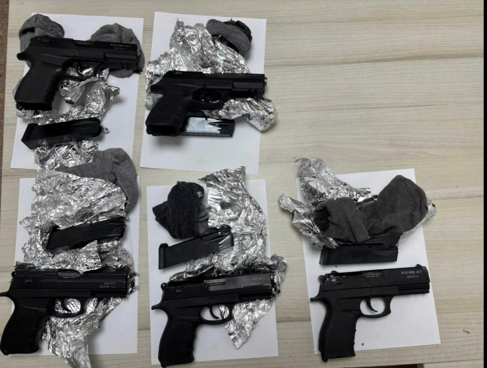 Handguns seized by troops during an attempted smuggling from Syria to Israel, October 6, 2025. (Israel Defense Forces)