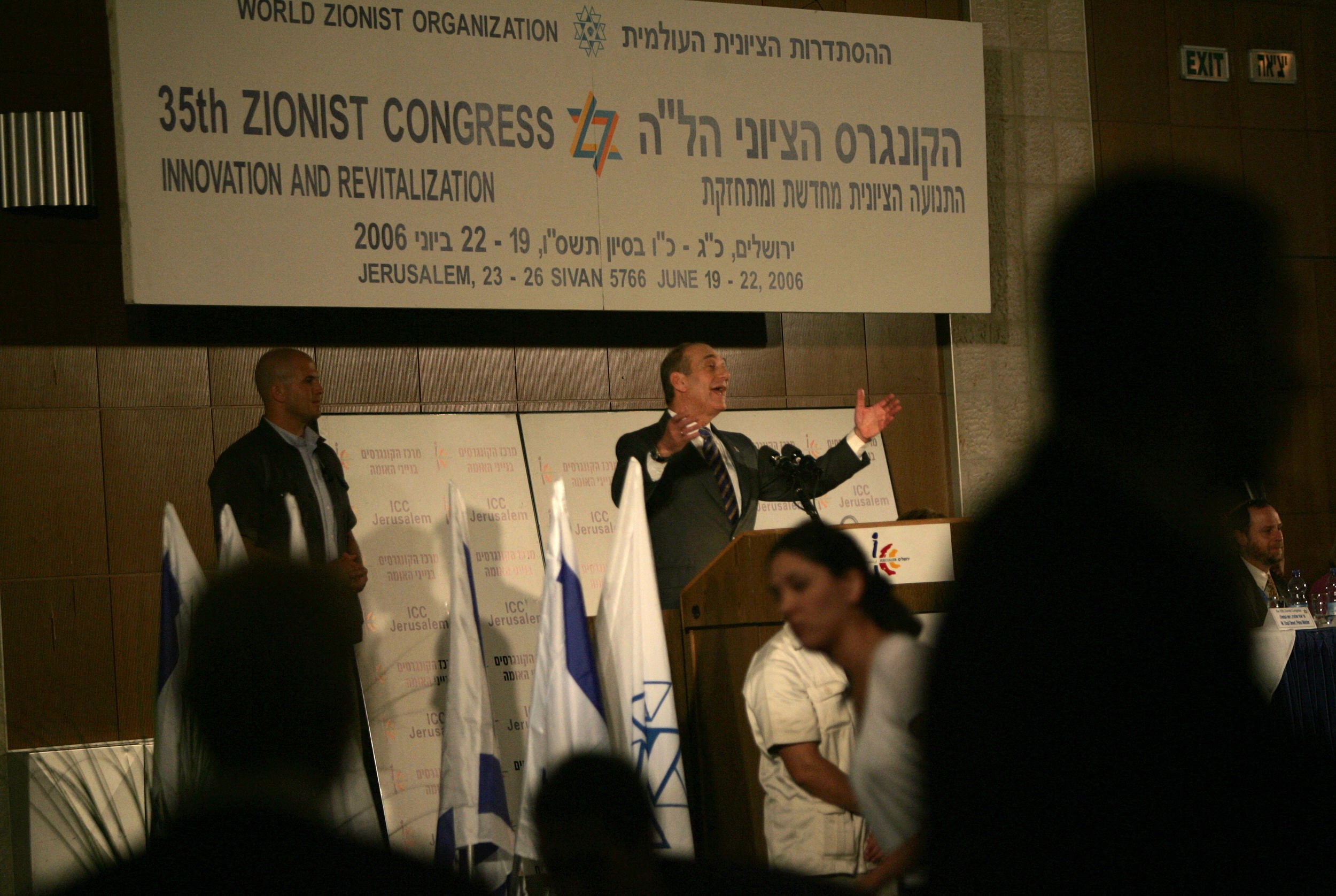 Israeli Prime Minister Ehud Olmert addresses the 35th World Zionist Congress in Jerusalem on June 20, 2006. (MENAHEM KAHANA / AFP)