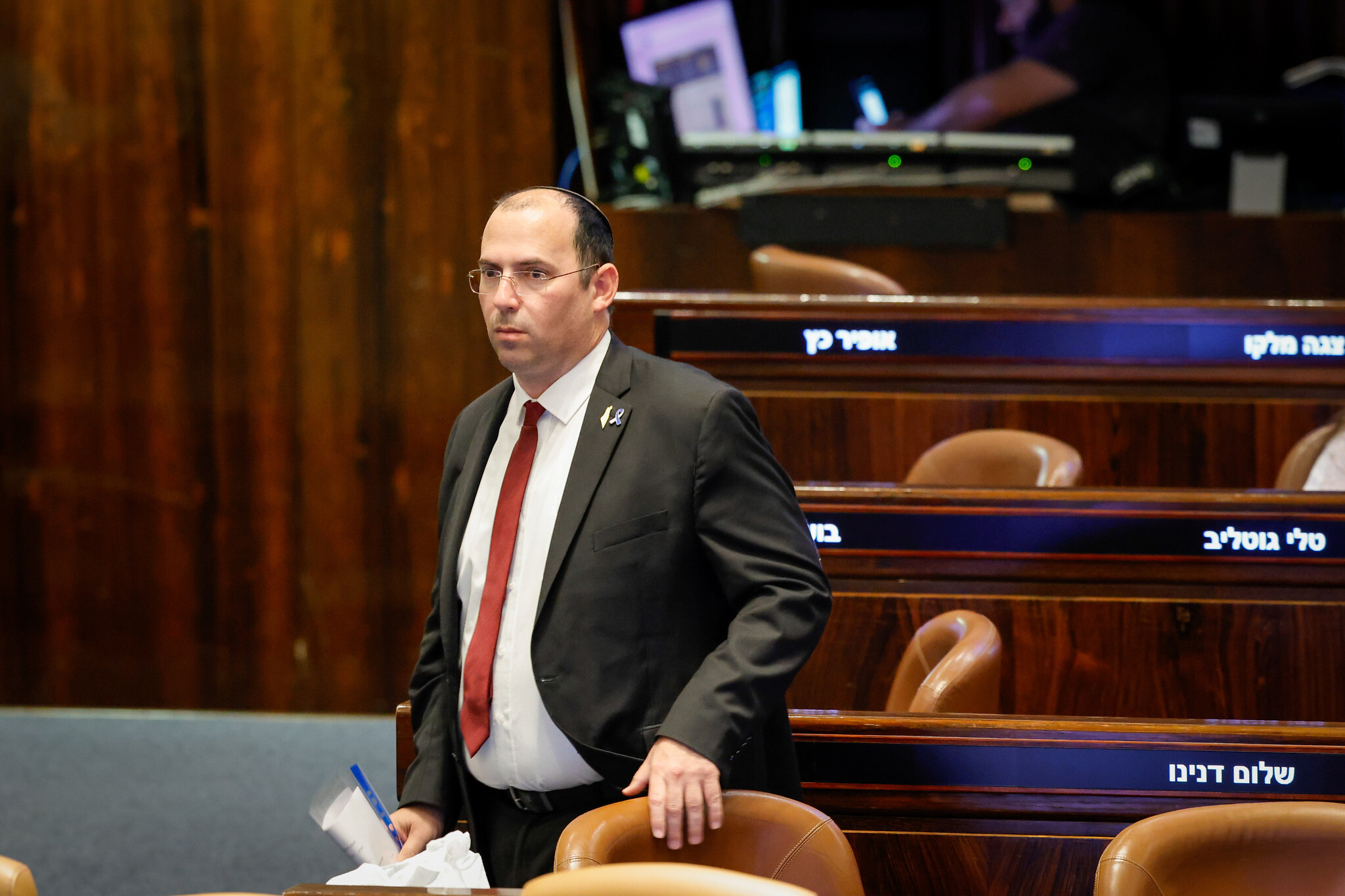 Religious Zionism MK Simcha Rothman in the Knesset, October 29, 2025. (Noam Moskowitz, Office of the Knesset Spokesperson)