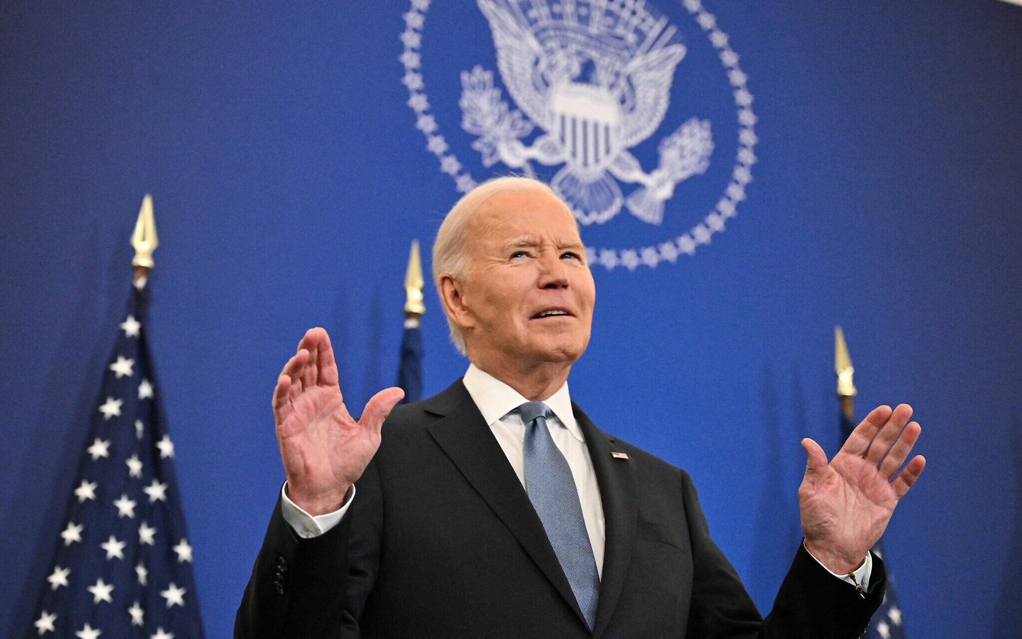 Then-US president Joe Biden arrives to speak at the State Department in Washington, DC, on January 13, 2025. (Roberto Schmidt/AFP)