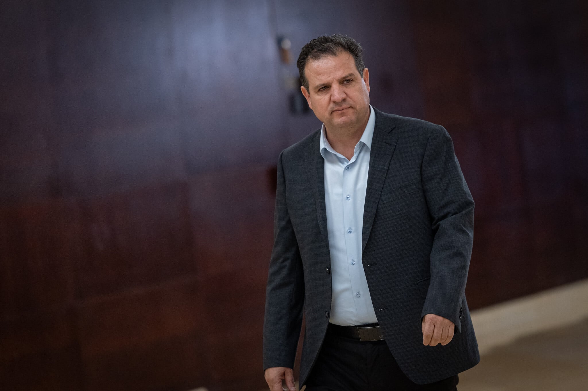 Hadash Ta’al MK Ayman Odeh walking at the Knesset in Jerusalem, October 20, 2025. (Photo by Chaim Goldberg/Flash90)