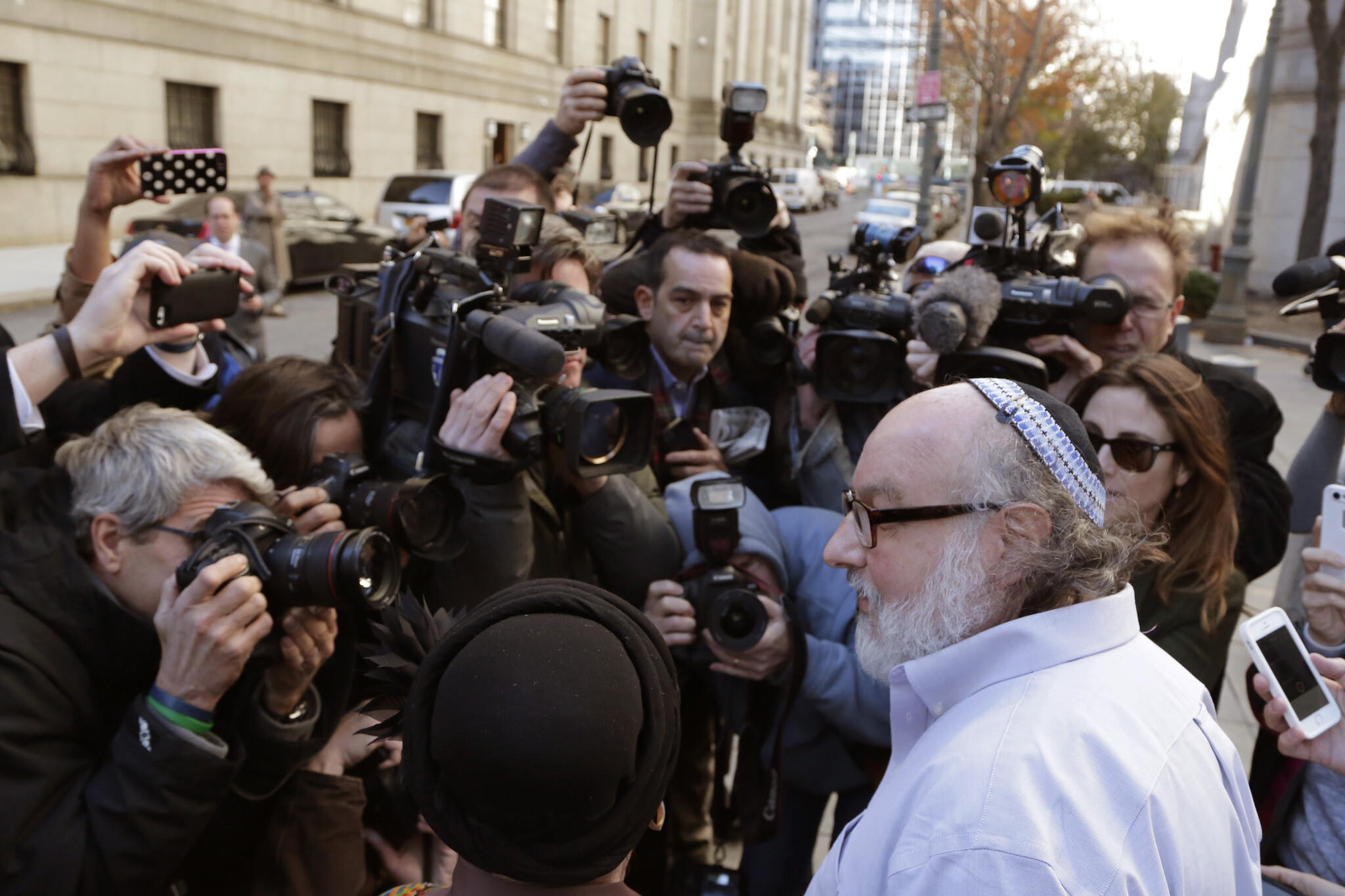 Convicted spy Jonathan Pollard leaves the federal courthouse in New York, November 20, 2015. (AP/Mark Lennihan)