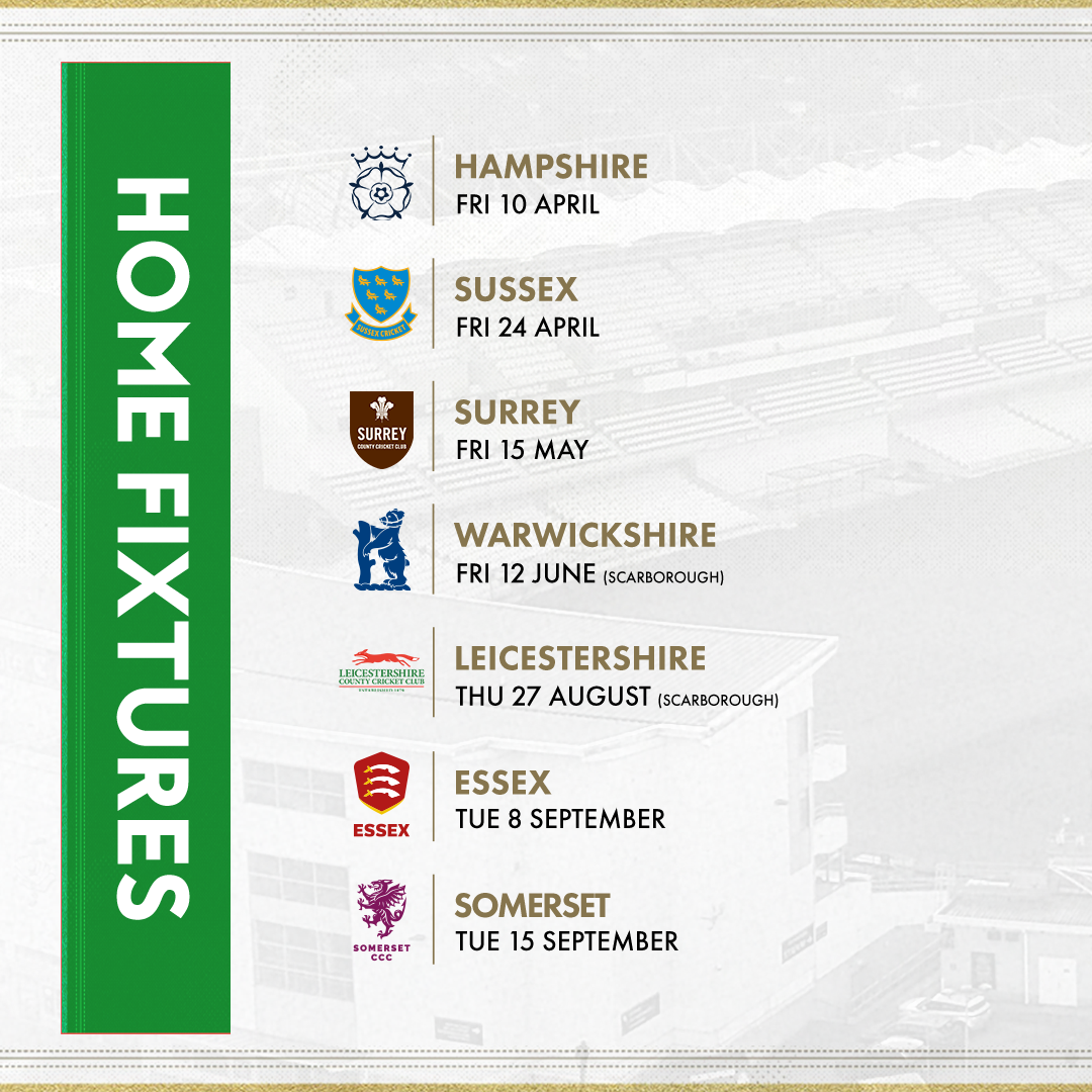 Yorkshire men will make the annual journey to Scarborough and York for their four home ties in the competition.