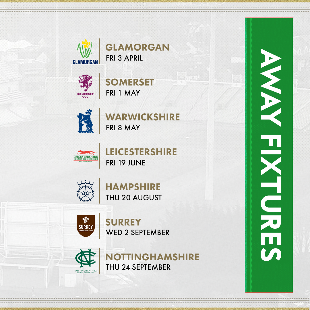 Late-season trips to Hampshire and Surrey will precede the visits of Essex and Somerset in the Rothesay County Championship before the season finishes at Nottinghamshire, who completed a barnstorming County Championship triumph in 2025.