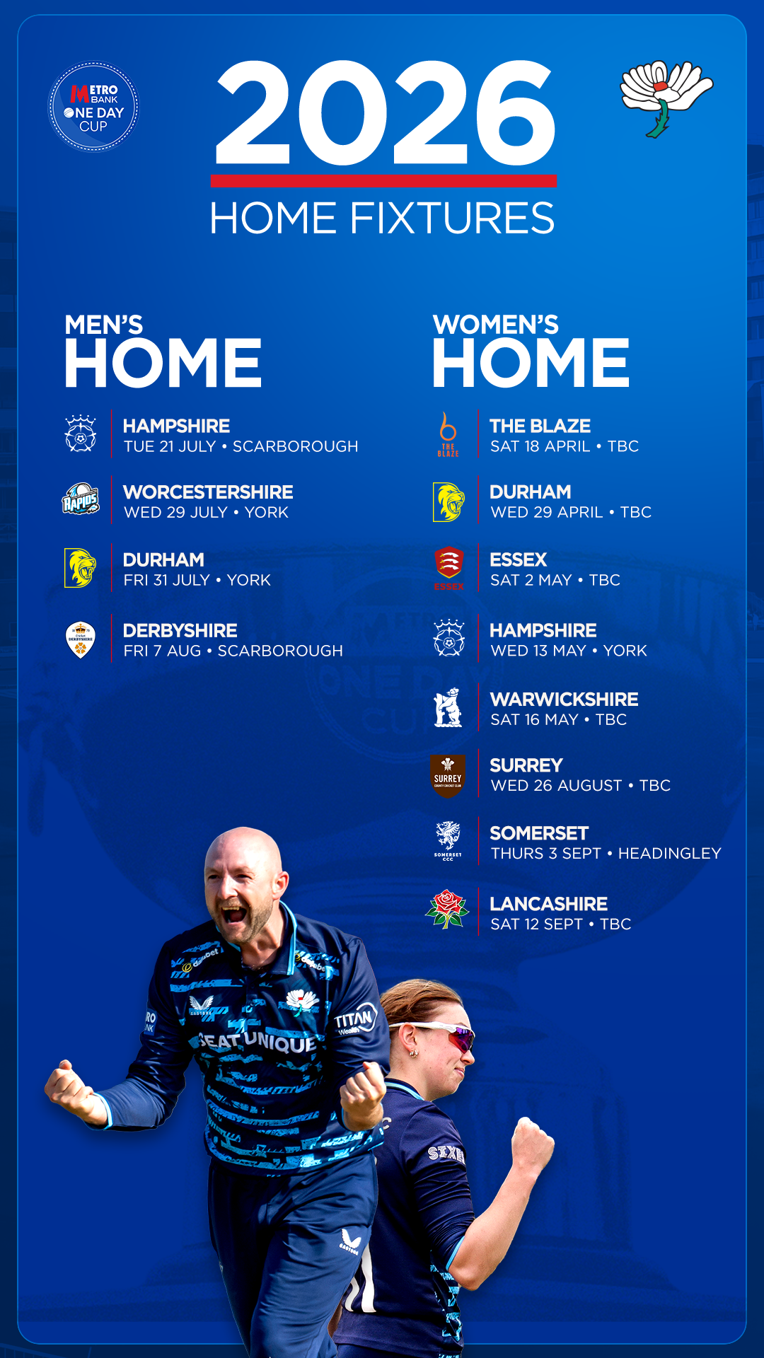 Both sets of Metro Bank One Day Cup fixtures have also been released with Rich Pyrah’s Yorkshire Women set to kick off their first season in Tier One with a trip to the CA County Ground in Taunton to take on Somerset. This is the first of 16 Metro Bank One Day Cup fixtures with their home Tier One debut coming against The Blaze.