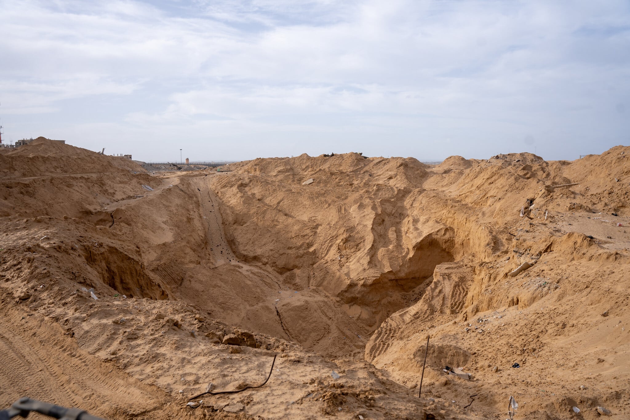 Several dozen meters from the section of the tunnel that journalists were allowed to enter stood a large UNRWA building, the largely untouched structure standing in stark contrast to the bombed-out landscape that remains of what was once the city of Rafah.