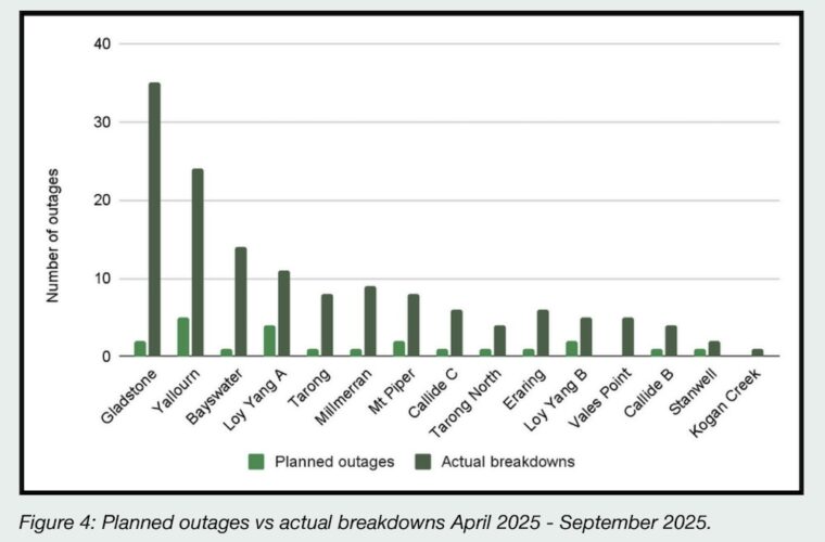 The report shows that at the beginning of April, 2025, the 15 coal plants spread across Queensland, New South Wales and Victoria submitted 23 planned maintenance shutdowns for the period until the end of September.