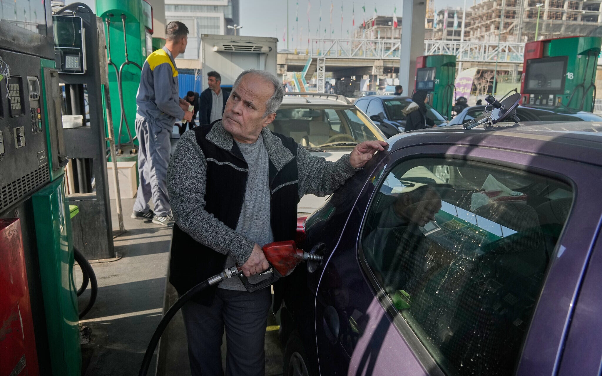 A man fills his car at a gas station in Tehran, Iran, December 13, 2025. (AP Photo/Vahid Salemi)
