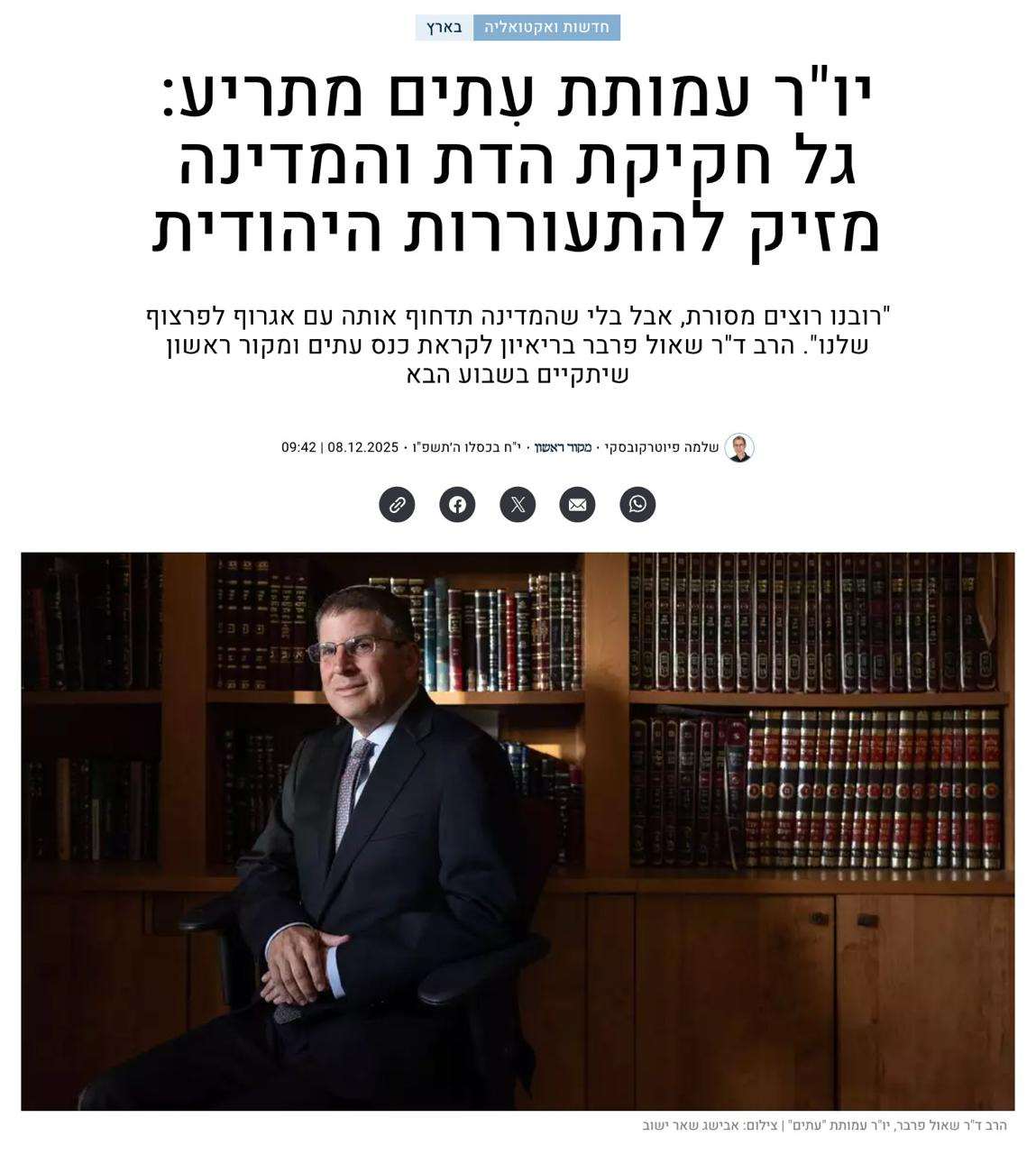 “Most of us want tradition, but not with the state shoving it into our faces with a punch.” Rabbi Dr. Shaul Farber in an interview ahead of the ITIM–Makor Rishon conference that will take place next week.”