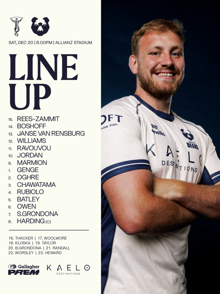 Bristol Bears team to face Harlequins at Allianz Stadium on Saturday (6pm KO, live on TNT Sports):