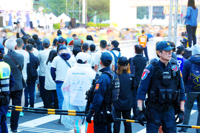 Meanwhile, New Taipei City Mayor Hou You-yi (侯友宜) said the city would also work closely with the central government to boost patrol density and protective capacity to ensure that the public can participate in events “with peace of mind.”