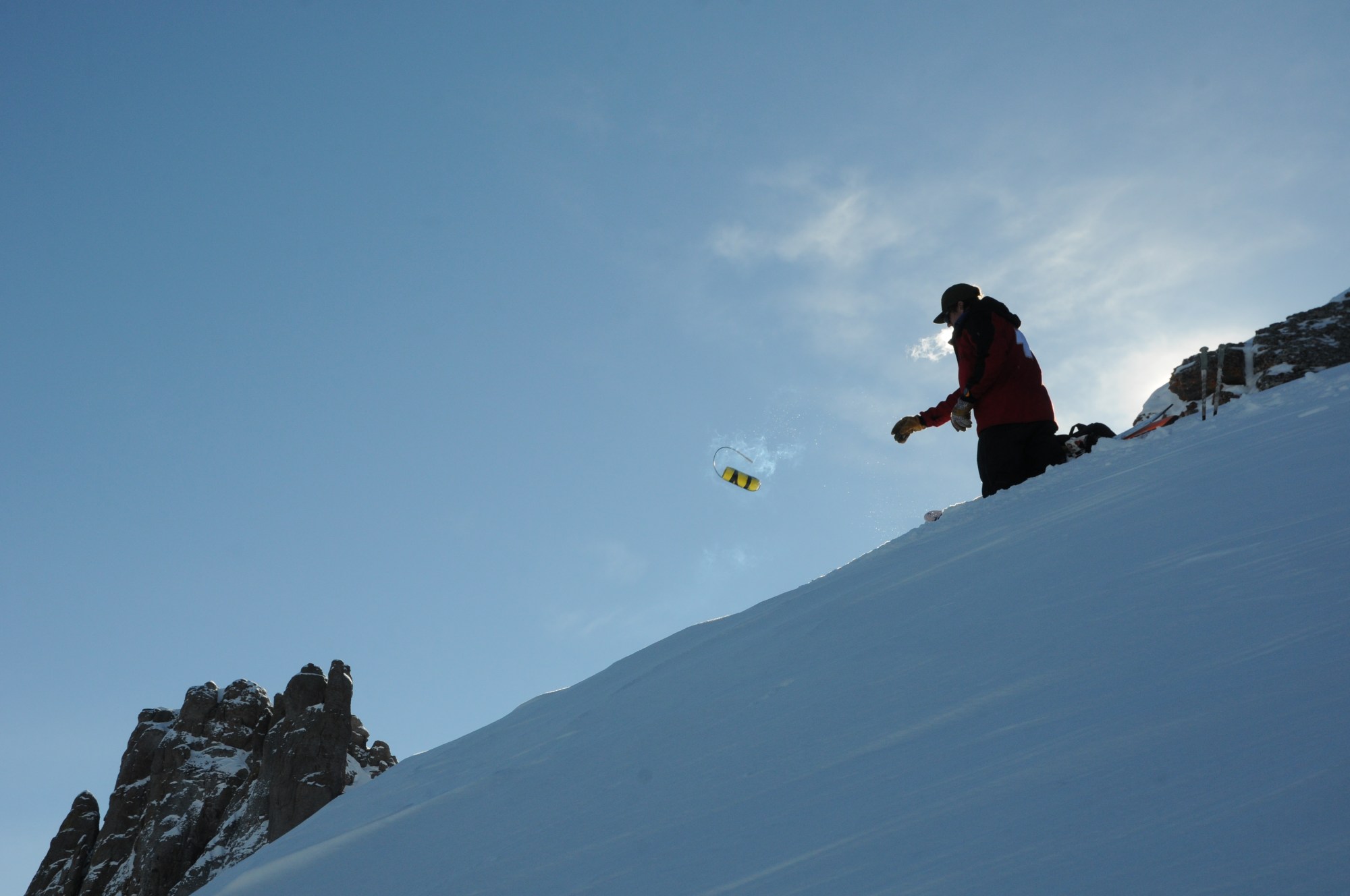 Telluride ski patroller Jim Greene throws a hand charge on Palmyra Peak in the winter of 2018-19. (Brett Schreckengost, Special to The Colorado Sun)