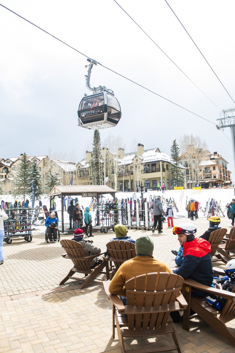 The slopeside village in Mountain Village in early April 2025. (Kelsey Brunner, Special to The Colorado Sun)