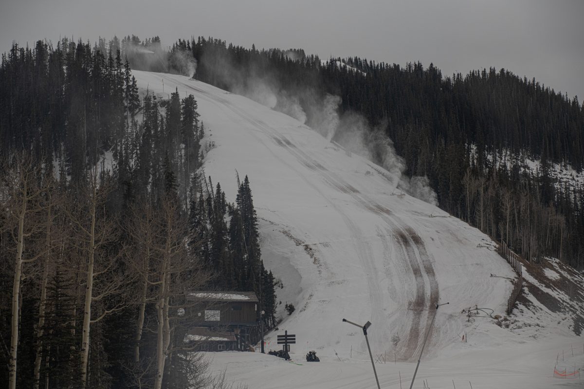 Snowmaking operations continue at the closed Telluride ski area in Mountain Village on Dec. 27, 2025. (William Woody, Special to The Colorado Sun)