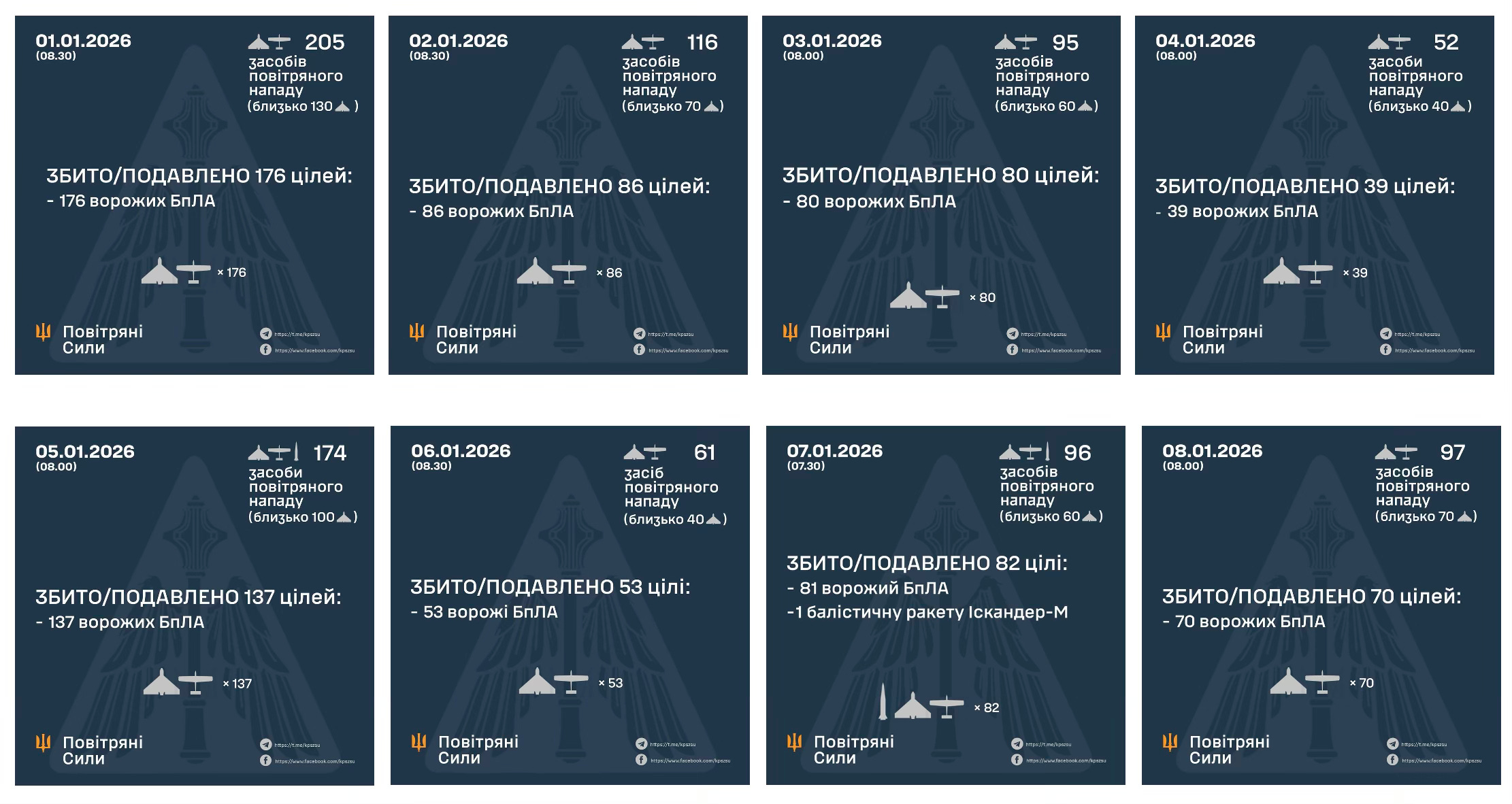 Russia’s aerial strikes against Ukraine since 1 January 2026. Source: Ukrainian Air Force
