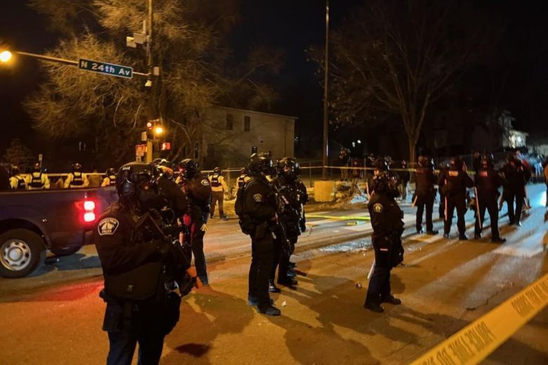 The incident began with a traffic stop about 6:50 p.m. The shooting occurred in the 600 block of 24th Avenue North. More than 100 demonstrators gathered at different locations nearby, facing off with federal agents who deployed tear gas at times.