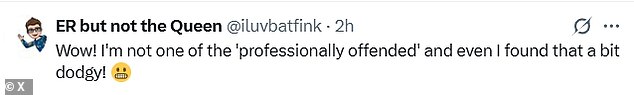 She wrote: ‘I’m going to be blunt because this “creative direction” is genuinely sickening and deeply disappointing.