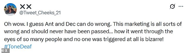 The podcast promotion posted on Ant and Dec’s X account that was later removed following backlash