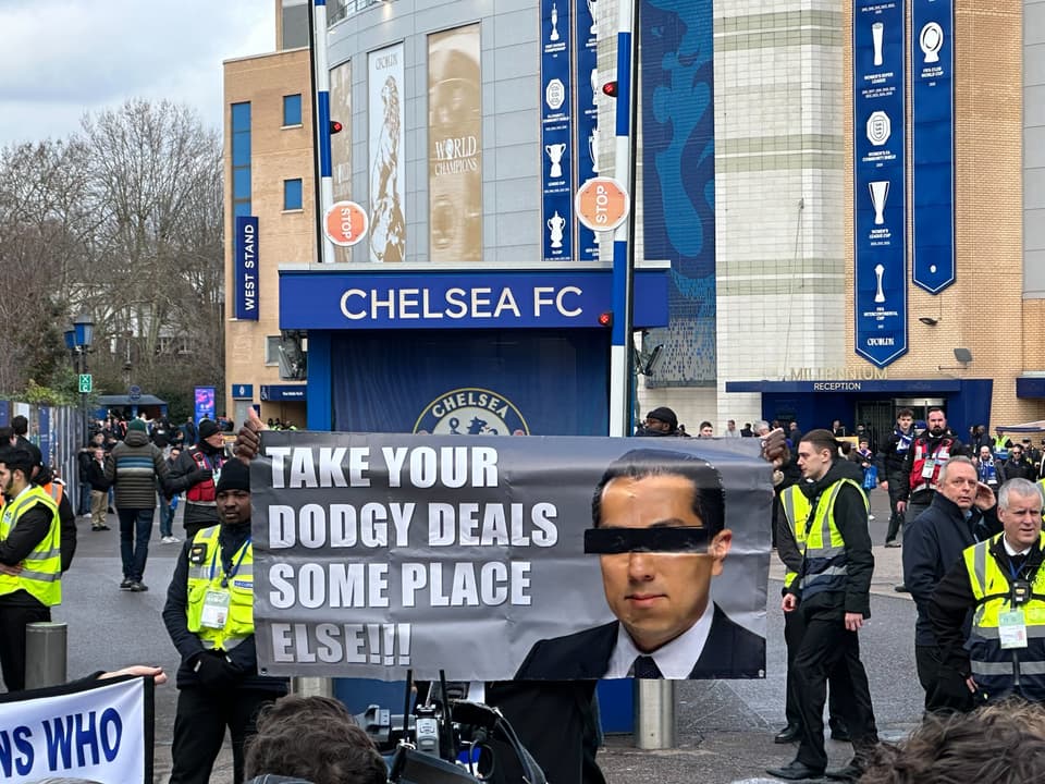 There were chants of “We want our Chelsea back” and “We don’t care about Clearlake, they don’t care about us”. One supporter held aloft a homemade banner which read: “Shove your model up your *ass”.