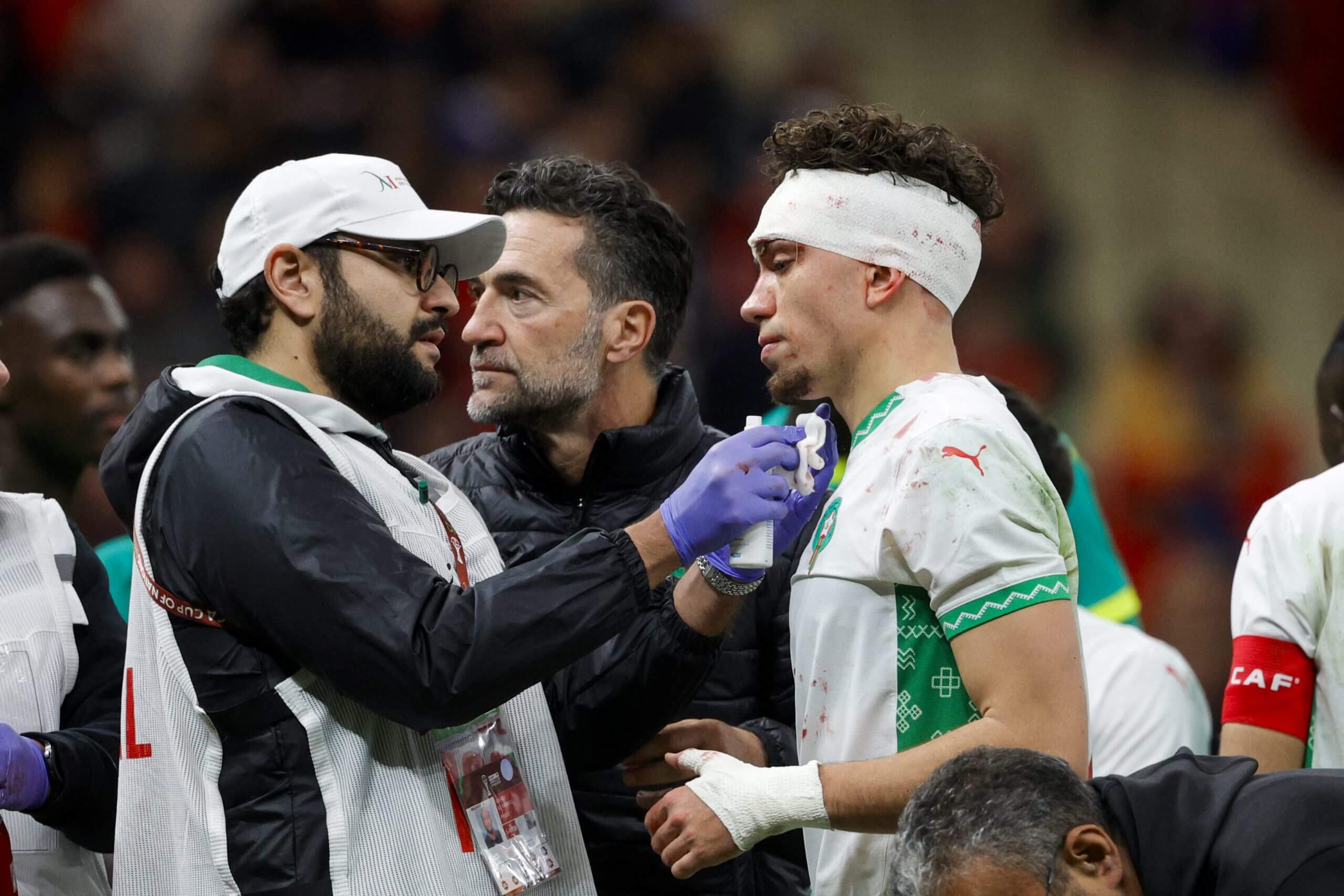 Morocco midfielder Neil El Aynaoui climbed to head the ball from a cross, only to head the back of Senegal full-back Malick Diouf. As the 24-year-old fell to the floor, there was a notable panic with players quickly spotting the blood gushing from above El Aynaoui’s eyebrow.