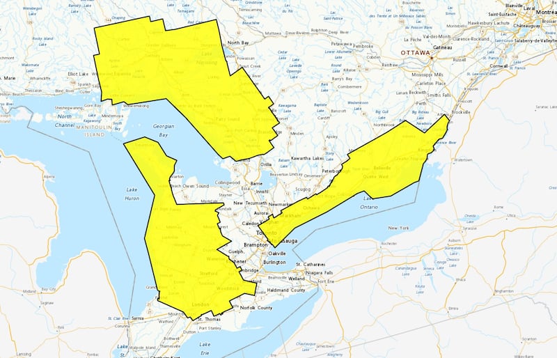 map, jan. 21 Parts of the GTA are under a snowfall warning, yellow alert, as an Alberta Clipper arrives in the region. (Environment Canada) 8:30 a.m.