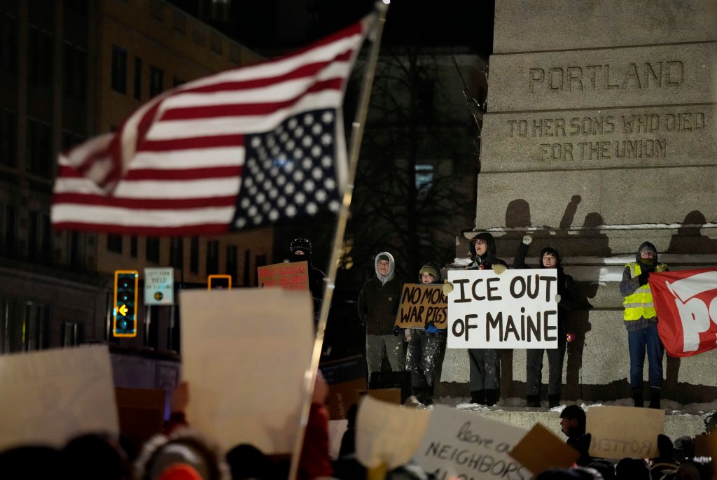 The protests came on a day when Gov. Janet Mills, who has strongly criticized the actions of ICE agents, issued a call for Congress to curtail funding for the agency “until they stop their aggressive tactics.”