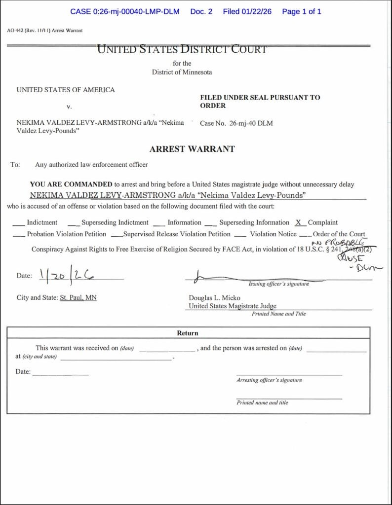 Judge Micko approved the warrants for Armstrong, Allen, and Kelly, but he struck the FACE Act charges, writing, “No probable cause.”