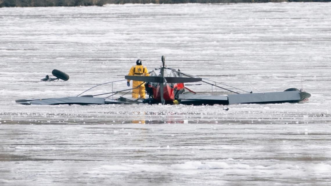 The sheriff’s office said based on preliminary information from first responders, the pilot clipped a powerline, then crashed onto the ice in the river.