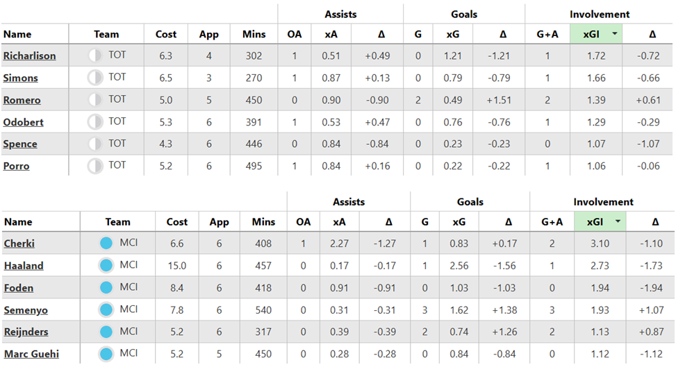 Over their last six Gameweeks, these are both sides’ best players for expected goal involvement (xGI):