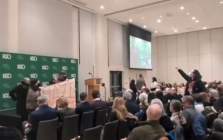 The disruption did not come as a surprise. The day before Klein arrived on campus, which happened to be Holocaust Remembrance Day, pro-Hamas activists decorated the campus with graffiti blasting Klein as a “Zionist pig” and “genocide denier.” They had even organized a faculty-sponsored counter-event to protest the platforming of a “liberal Zionist mouthpiece.”