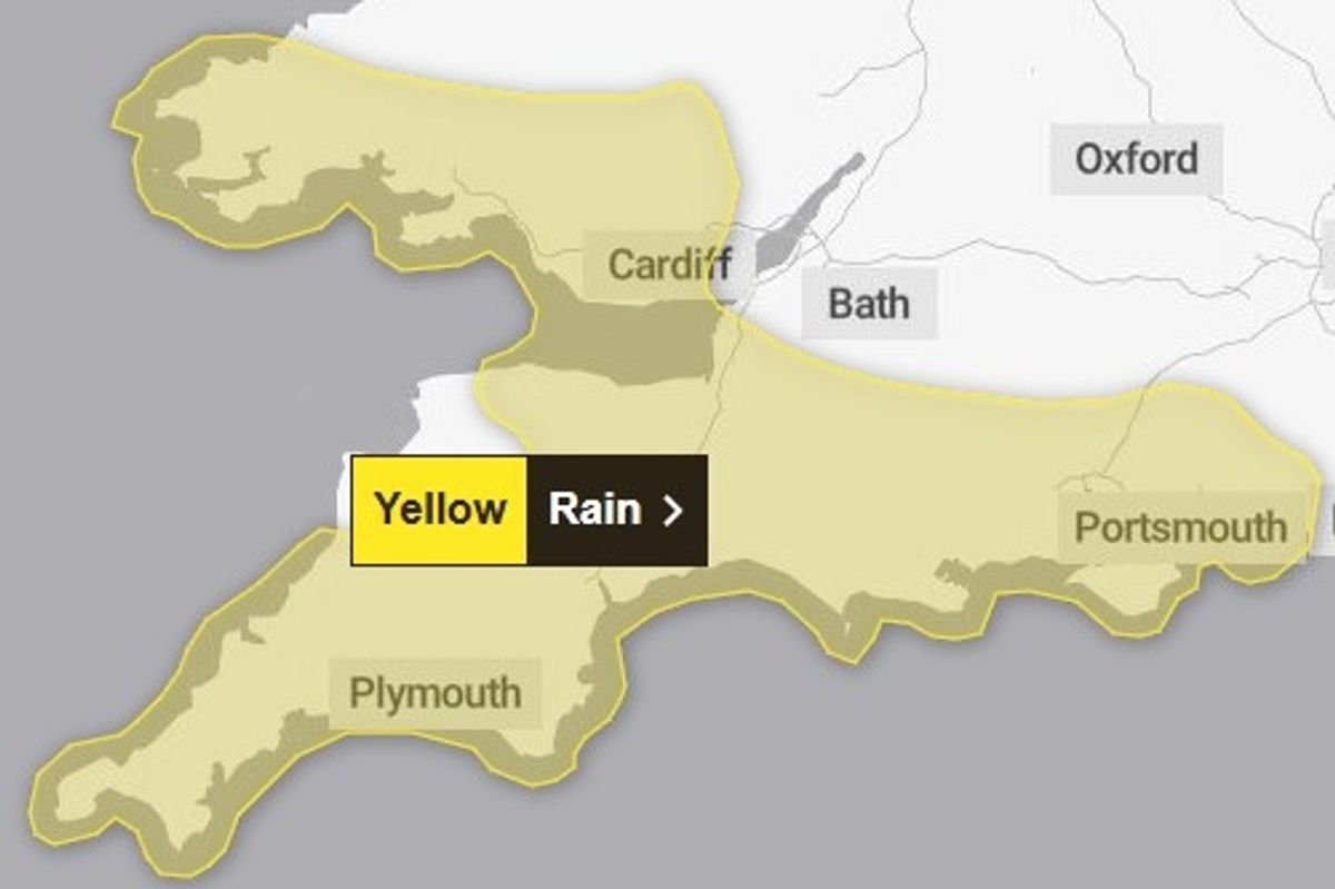 A Yellow rain warning for the South West on February 8, 2026(Image: Met Office)