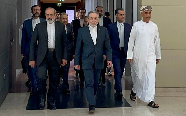In this handout photo obtained from Iran’s foreign ministry on February 6, 2026, Iran’s Foreign Minister Abbas Araghchi (C) arrives for a meeting in Muscat, Oman. (IRAN FOREIGN MINISTRY / AFP)