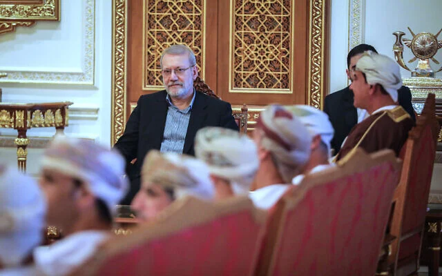 In this photo released by Iran’s Supreme National Security Council office, Secretary of the Supreme National Security Council Ali Larijani attends a meeting in Muscat, Oman, February 10, 2026. (Erfan Kouchari/Iran’s Supreme National Security Council Office via AP)