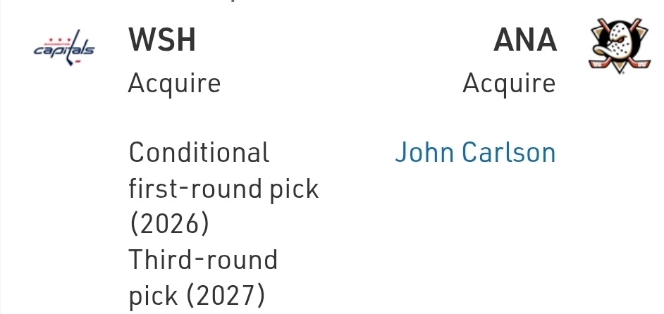 The Ducks are in a weird spot in that if they’re going to be Cup contenders, it’s going to be with a core of Leo Carlsson, Cutter Gauthier, Beckett Sennecke, and Jackson LaCombe. I would’ve liked to see them use a first- and a third-round pick for someone who’s going to be prime-aged as those guys go through theirs, but John Carlson helps this year, and the Pacific is legitimately weak, so there’s a world where this pushes them over the line to win a round or two.