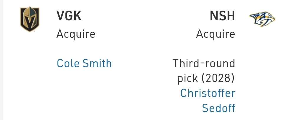 Cole Smith has played parts of six season in the NHL, is 30, and is a large man. He doesn’t really move the needle, but Vegas is just trying to plug holes.