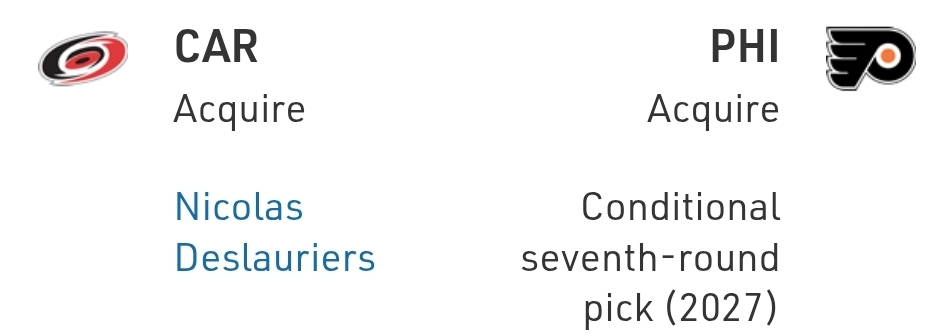 Sometimes I hear “Carolina isn’t tough enough” when talking about the playoffs and I suppose this scratches that itch. Nicolas Deslauriers can play a bit too, though, and it’s nice to have the nuclear threat to prevent anyone from getting too silly against your skill guys.