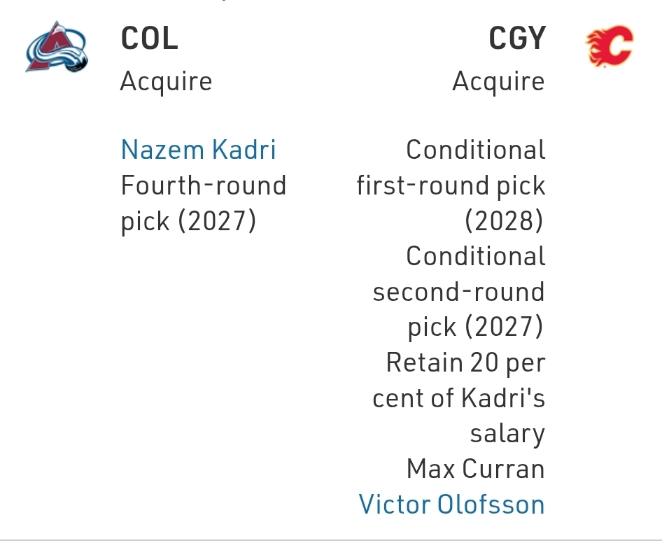 This one took a while to parse, but if you consider that the Isles are paying to get off Jonathan Drouin’s money (remember how that cost Edmonton?), the return makes more sense. The Avs pick will be late and for the Islanders, they get even more playoff stout in a weird division. Plus, Brayden Schenn helps everyone slot into more favourable positions.