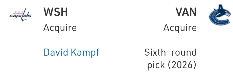 David Kampf is a good defensive fourth-line centre, and the Caps are kinda doing this “try to make the playoffs while also selling” thing, so that helps. The Canucks also get an asset for a guy they needed none to acquire.