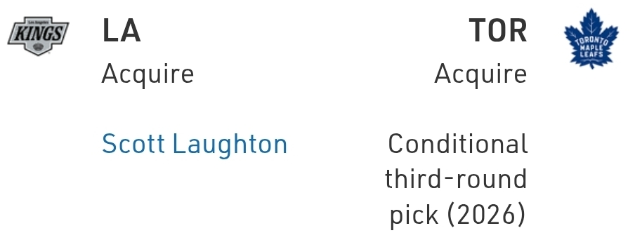 The Kings are currently on the fringe of the playoff picture, so it makes sense to add in small ways and hope to find your way in. Laughton can play just about anywhere in your forward group, is a heart-and-soul guy and that he went for a conditional third-round pick in a year that prices were sky-high was a huge win for the Kings.