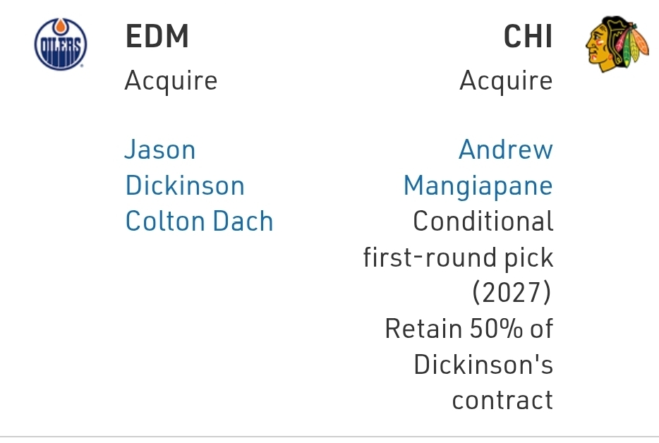 Dickinson shouldn’t be judged against the return, which is skewed by the Mangiapane contract. And be critical of that if you like, but Dickinson should serve a clear depth role on the Oilers, who’ve struggled badly to defend this season.