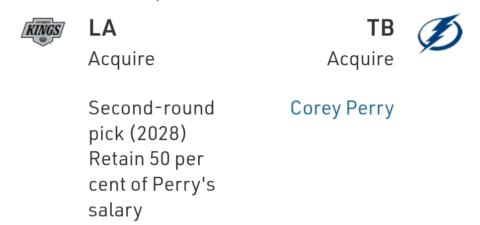 It’s tough to out-playoff experience Corey Perry, and given Tampa Bay’s aspirations, it’s a good fit. The Kings basically went Perry for Laughton with the way it worked out.
