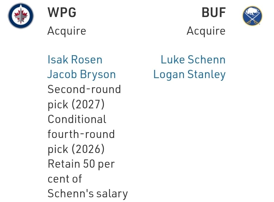 It’s not like the cost paid is anything too great, and, again, I see the Sabres trying to get tougher, it’s just hard to view anything fairly in the wake of the collapsed Colton Parayko deal. Maybe Logan Stanely is one of those late-developing big guys that has big years ahead, maybe Luke Schenn helps them on the bottom pair in the playoffs, if nothing else they got less fun to play seven times in a row.
