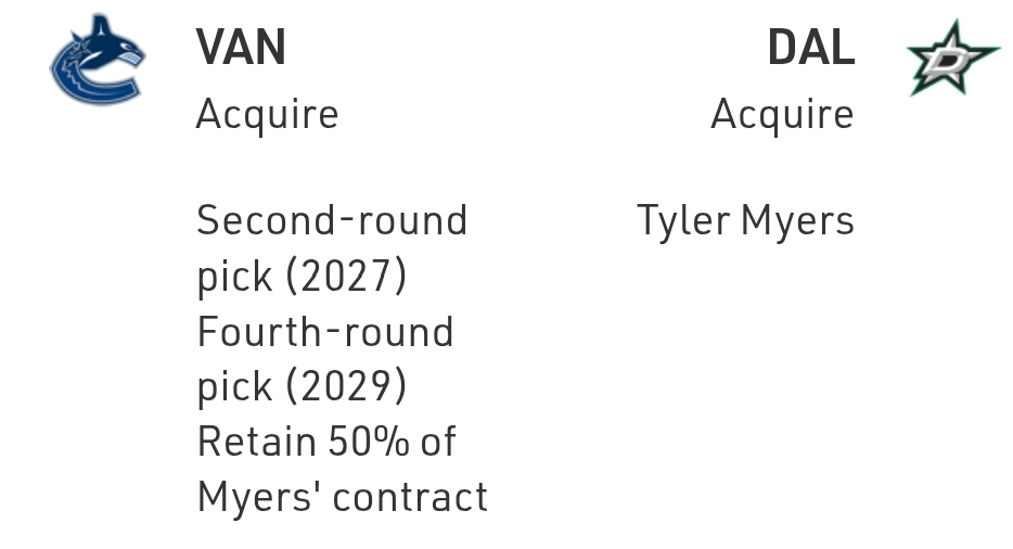 All told, it’s a pretty unimpressive return for Tyler Myers, at least in part because he had trade protection and all but chose where he wanted to go. Myers is a good proven pro back there and improves Dallas’ chances in what should be a brutal first two rounds in the Central.