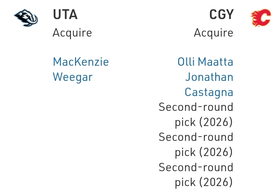 I like this return for the Flames, who get a whole whack of second-rounders in the very next draft, meaning in 2-3 years, when they want to be good, they should see some of this talent realized at the NHL level. As well, I love this move for Utah because it’s buying low on MacKenzie Weegar who can be a top-pair defenceman, and is cost-controlled (cheap!) for years to come.