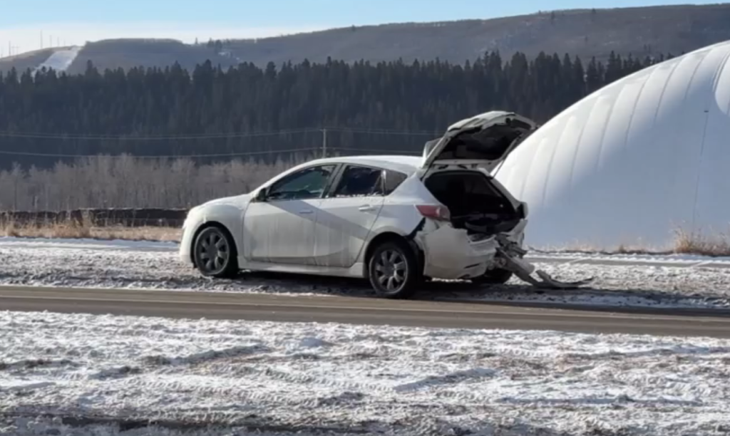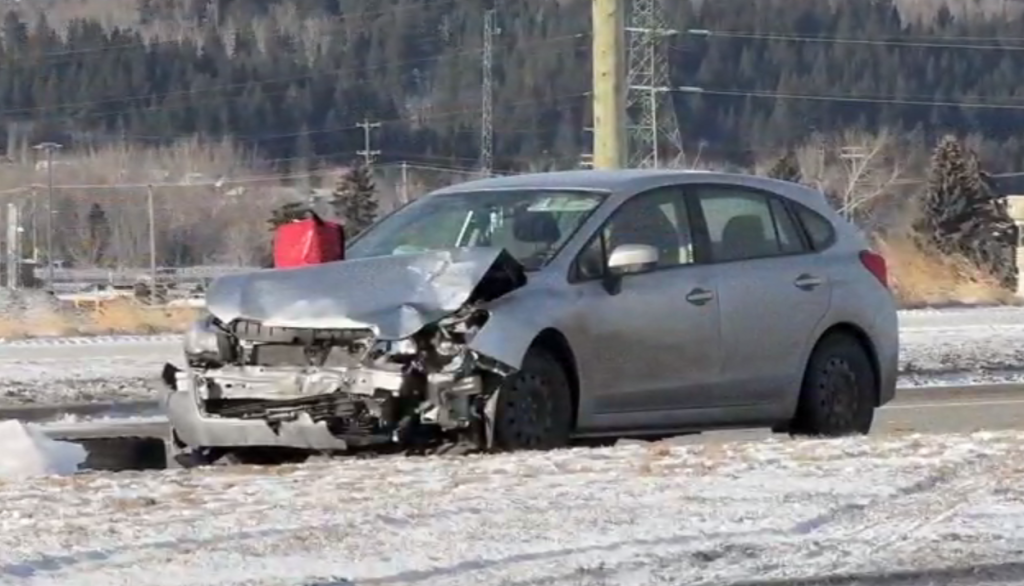 Images of the vehicles involved in a crash at Nose Hill Drive NW and Tuscany Hill NW that sent a person to hospital with life-threatening injuries on Tuesday, March 10, 2026. (Rayn Rashid, CityNews image)